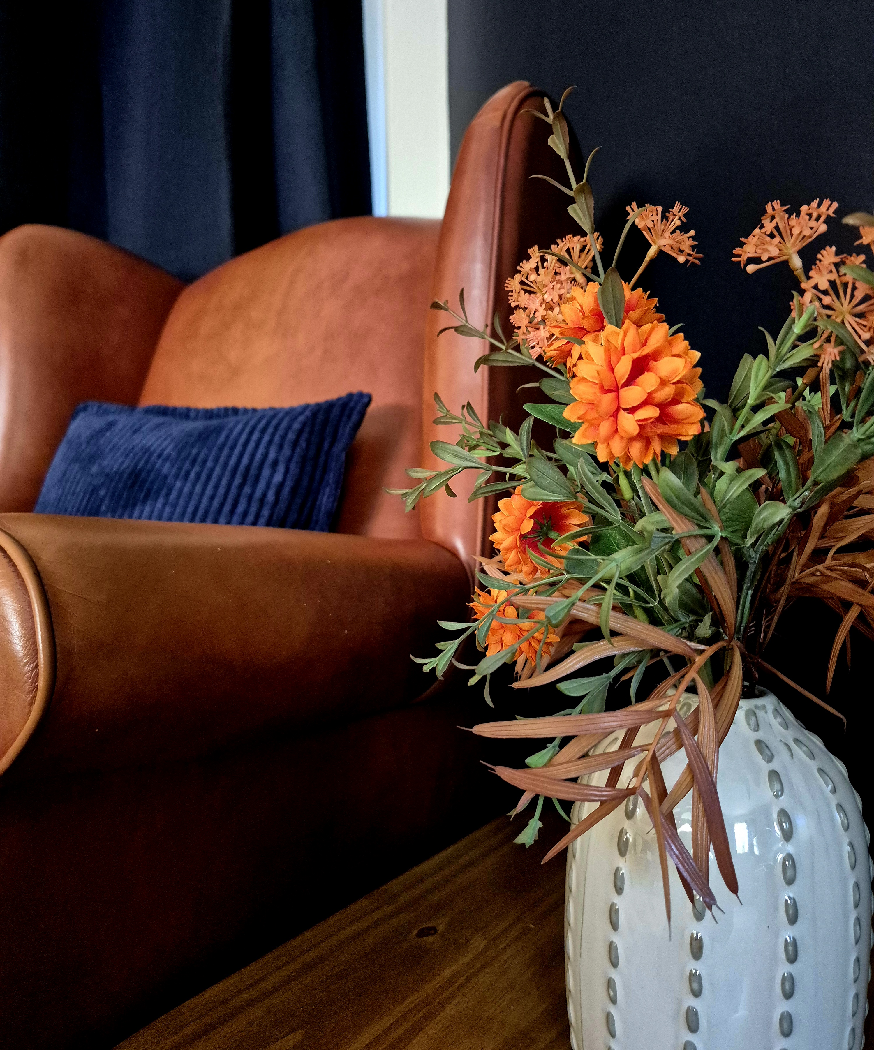 Contemporary lounge seating area includes a leather sofa and wing back chair sofas 42'' SMART flat screen TV with sky freeview.